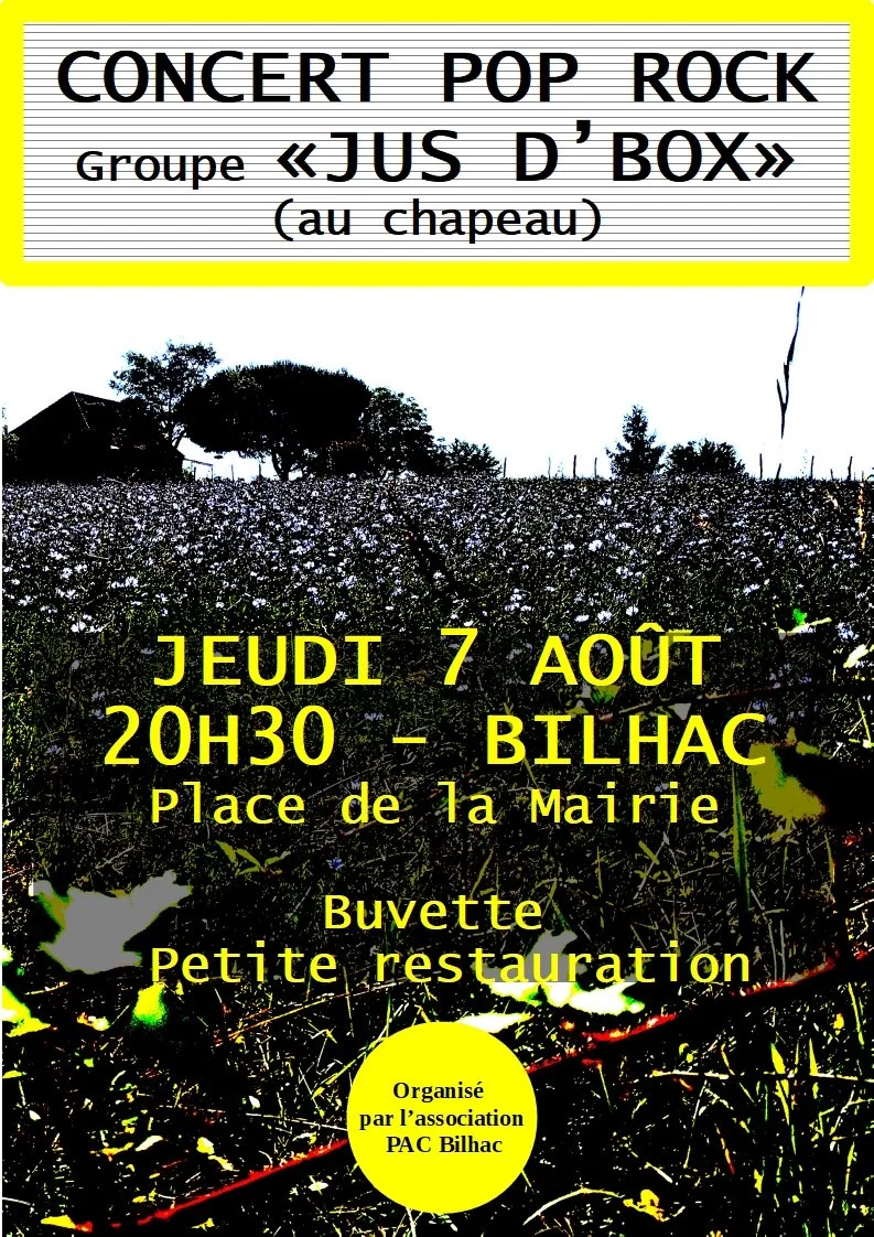 Concert Pop Rock, à Bilhac - jeudi 7 août - organisé par l’association PAC 23 juil. Écrit par Jean-Paul DUMAS Jean-Paul DUMAS