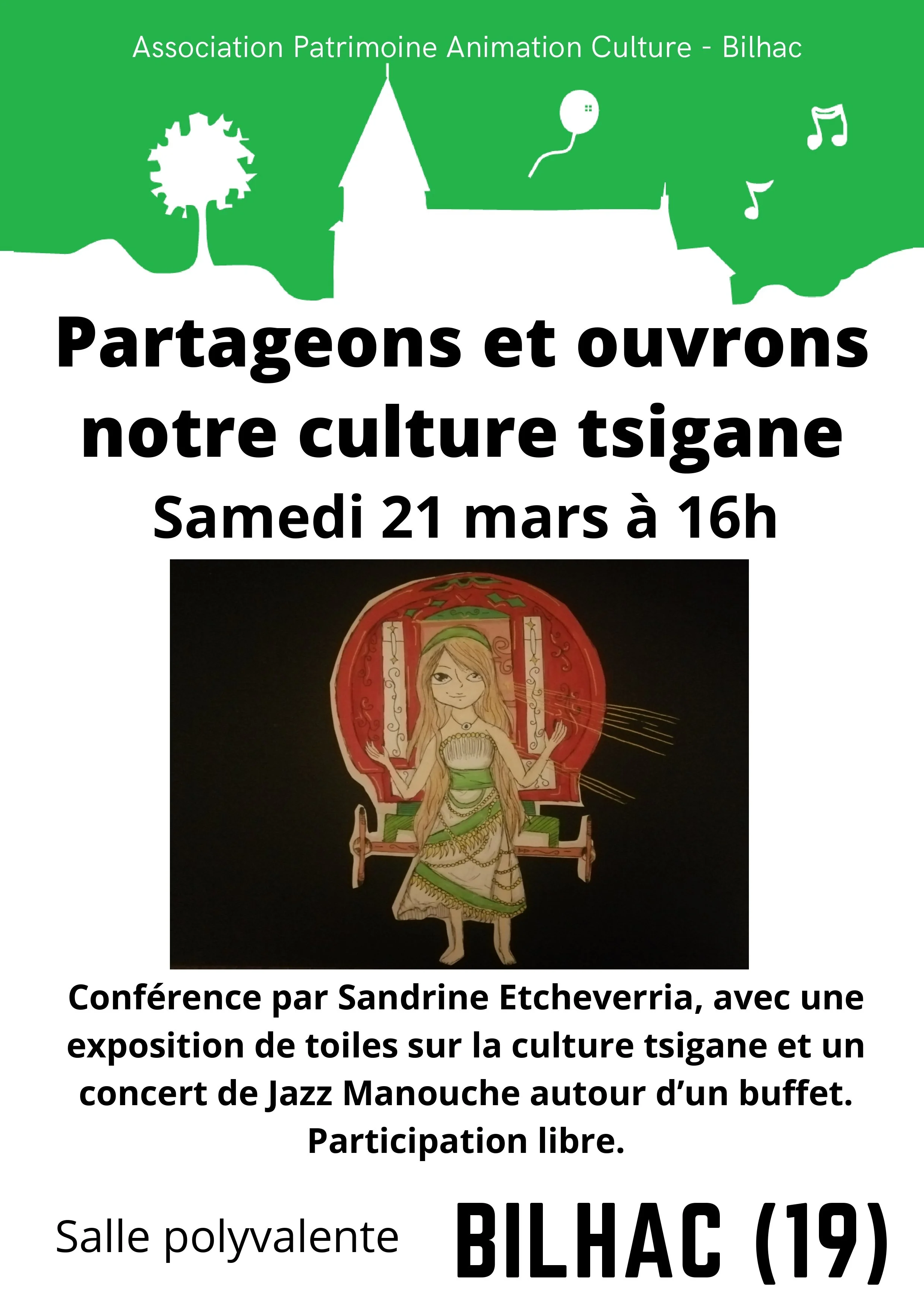 Conférence - Exposition - Concert organisés par l’Association Patrimoine Animation Culture - Bilhac, salle polyvalente, samedi 21 mars à 16h00 9 mars Écrit par Jean-Paul DUMAS Jean-Paul DUMAS