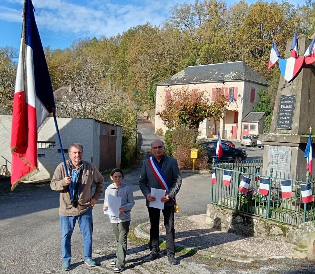 Le 11 novembre 2025, commémoration de la fin de la guerre de 1914-1918 devant le monument aux morts à Bilhac.