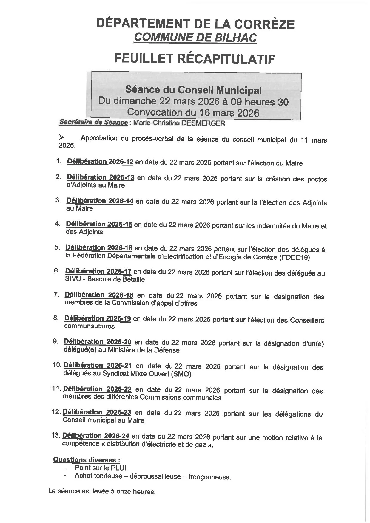 Feuillet récapitulatif des délibérations du Conseil Municipal du 22 mars 2026 PV Conseil Municipal 8 avr. Écrit par Jean-Paul DUMAS Jean-Paul DUMAS